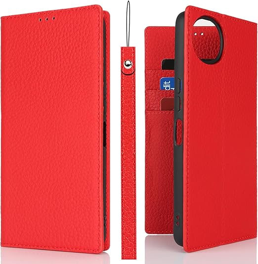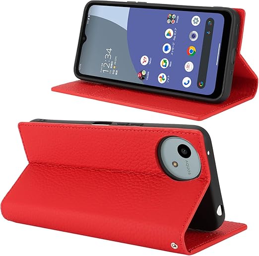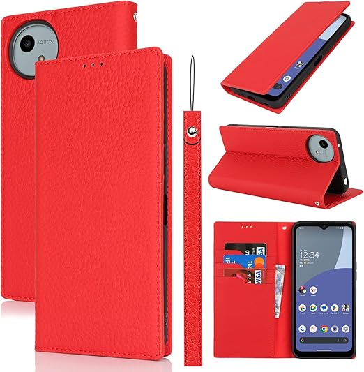 Eastwave Aquos Wish4 ケース 本革 牛革 SH-52E A402SH ケース 手帳型 カバー AQUOS WISH 4 SH-52E A402SH SH-M27 対応 手帳 本革 柔らかい 本皮 スプラットホール付き スプラット同梱 内蔵マグネット - レッド a