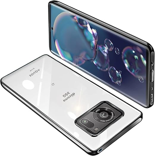 AQUOS R6 ケース SH-51B SH-M22 クリア 透明 ガバー スマホケース 耐衝撃 TPU 薄型 シリコン スリム 擦り傷防止 黄変防止 メッキ加工 ストラップホール付き(ブラック) a