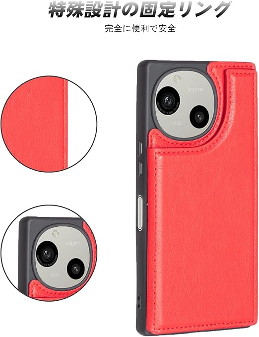 【 Antimam 】AQUOS R9/SH-51E docomo 用 ケース 手帳型 財布型 新型 全面保護 耐衝撃 擦り傷防止 軽量 落下保護 手帳型 ケース(レッド)シャープアクオスr9 ドコモsh51e 高級 PU革 背面 IC カード 収納 スタンド機能 ケース aquos r9 赤色 a