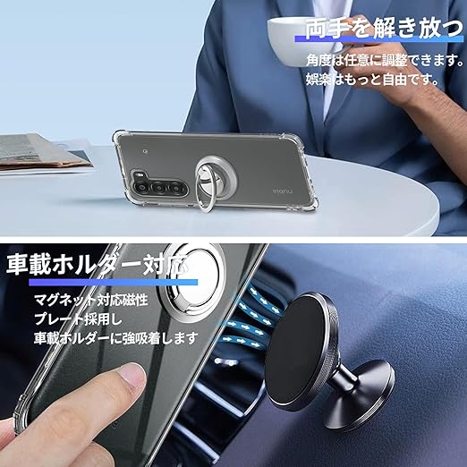 【スタンド機能 & 車載ホルダー対応】後ろに付いているフィンガーリングはスタンド機能はもちろん、滑りにくくて持ちやすい、安定的なグリップが特徴です。リングはケースにしっかり固定されていて、縦置き、横置きどんな角度でも固定できます。360度回転可能、180角度調節可能、携帯電話でビデオを見るのはとても便利です