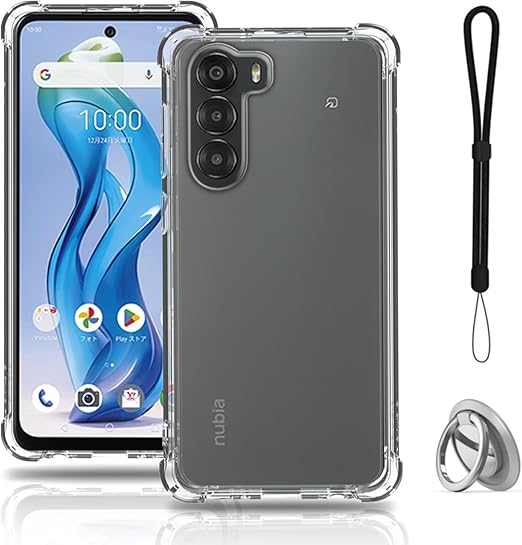 Nubia S 5G 用 ケース カバー スタンド付き 角度調整可能 車載ホルダー対応【NOUKAJU】 スマホケース ストラップ付き 軽量 TPU ソフト クリア 持ちやすい 指紋防止 耐衝撃 黄変防止 a