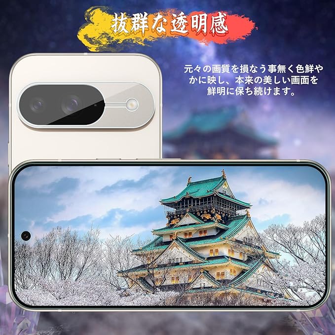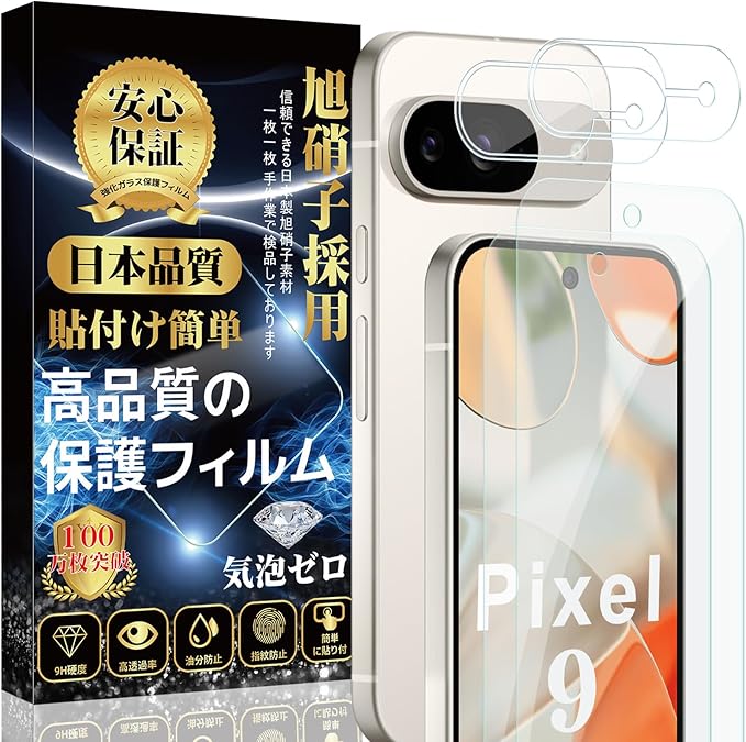 Google Pixel 9ガラスフィルム(2枚)+ Google Pixel 9カメラフィルム(2枚)【旭硝子素材製 】 Google Pixel 9 フィルム 硬度9H 貼り付け簡単 気泡防止 自動吸着 撥水撥油 指紋防止 飛散防止 ピクセル9 保護フィルム【4枚入り】 a