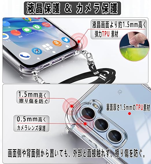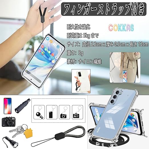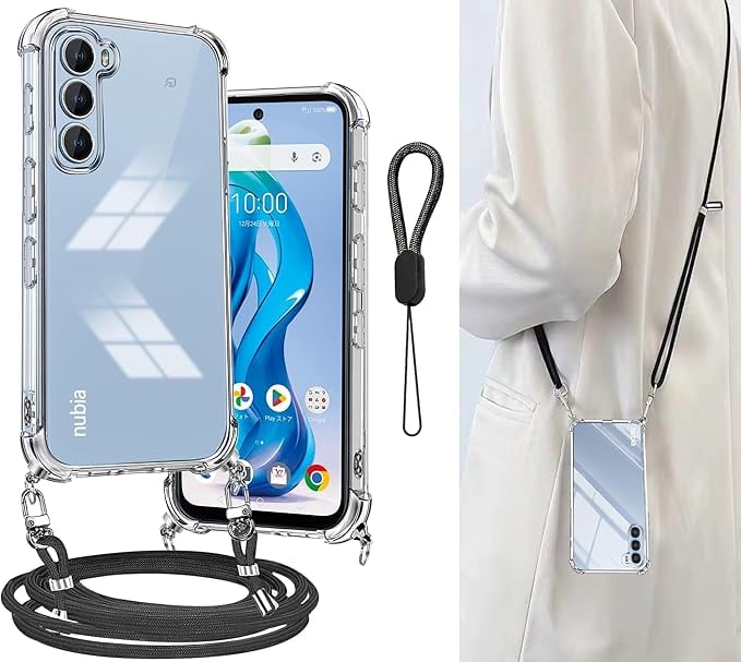 Cokkas Nubia S 5G ケース ZTE Nubia S 5G (A403ZT) ケース ショルダー [ストラップ2本付き] 紐付き 肩がけ 首掛け 縄掛け カバー ストラップホール付き 薄型 透明 シリコン TPU バンパー 耐衝撃 米軍MIL規格 長さ調整可能 (クリア) a