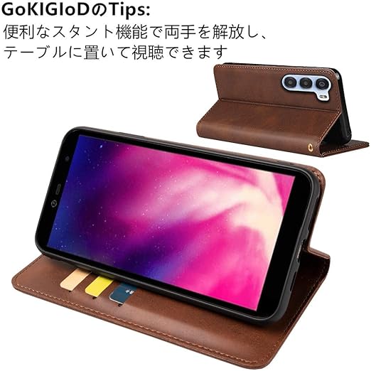 Nubia S 5G A403ZT ケース 手帳型 ストラップ 同梱 適用 NubiaS5G ワイモバイル 手帳型ケース ヌビア S 5G カバー 手帳 ヌビアS5G スマホケース NubiaS5Gケース A403ZTケース case 【GoKIGIoD】 財布型 カード収納 ストラップホール 内蔵マグネット スタンド機能 耐衝撃 レトロ ダークブラウン a