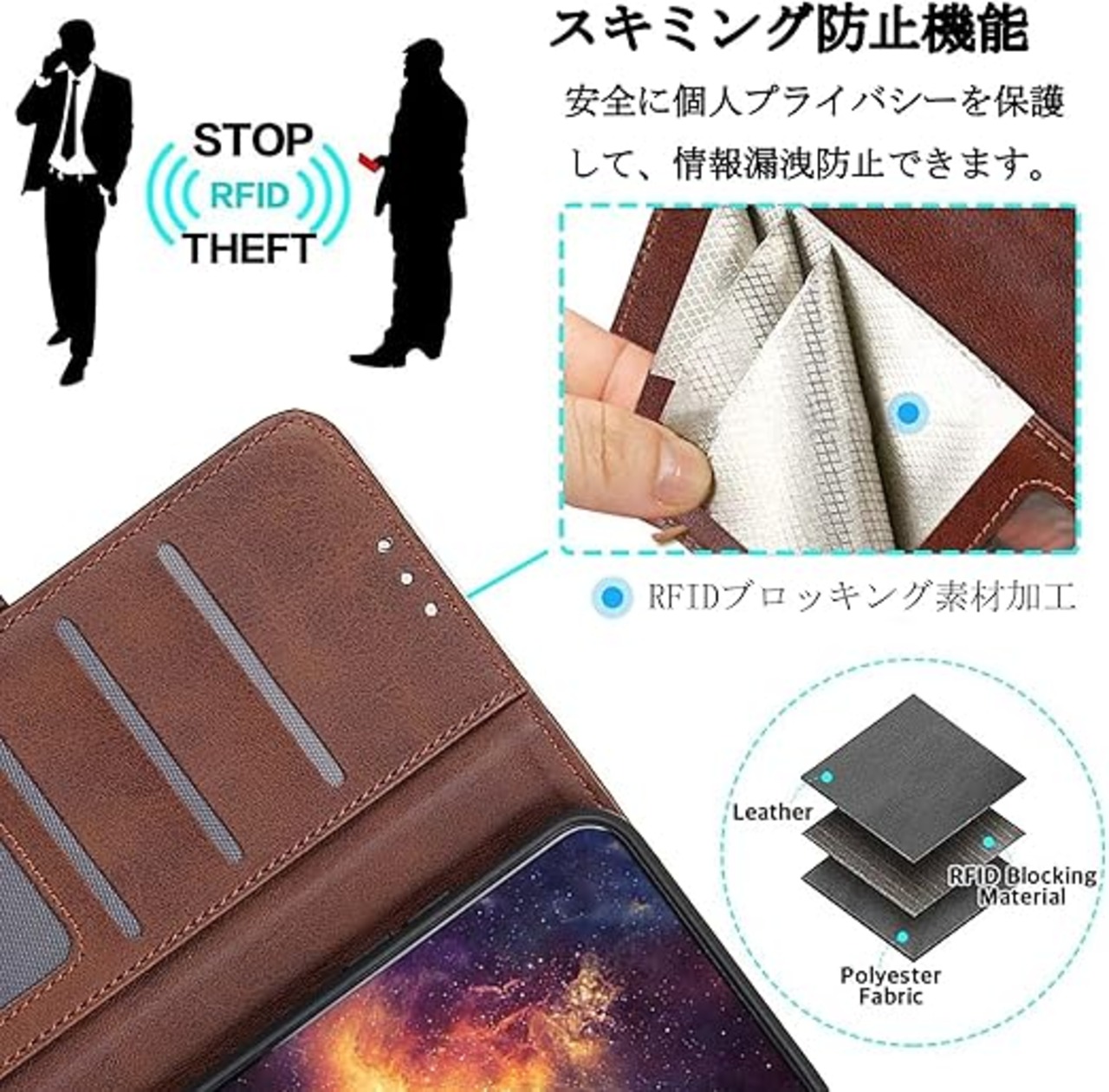 【優れた機能】:3枚カードポケットと紙幣も入る隠しポケット付き、スキミング被