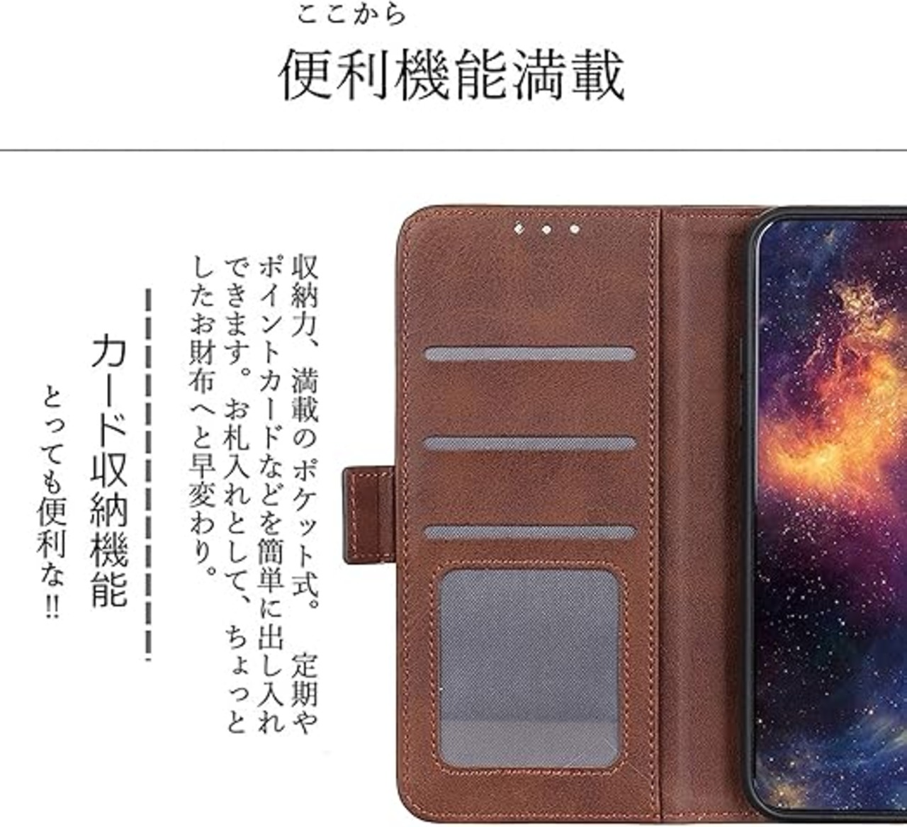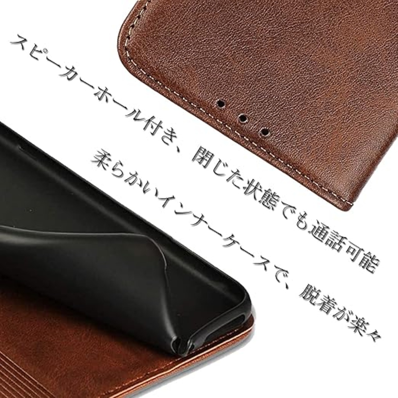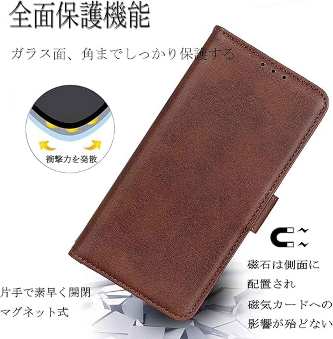 【高級感溢れる】:外部は耐熱性と柔軟性を誇るPUレザーを採用した、キズや汚れに強く、放熱性や耐衝撃が良く、携帯本体落下防止に役立ちし、落としても衝撃を緩やかにして、携帯カバー隅々までしっかりを全面保護できます。インナーケースは弾力性のあるソフトTPU素材を採用しており、脱着が楽々で、さらにカメラレンズ保護構造で、レンズを下に置いても安心。