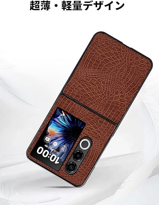 For ZTE nubia Flip 2 5G ケース ーチェーン付き YANMONGI 薄型 軽量 耐衝撃 落下防止 滑り止め レンズ保護 傷防止 衝撃吸収 指紋防止 携帯ケース ZTE nubia Flip 2 5G スマホケース 対応 (ブラウン) a