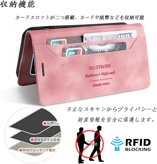 【高品質素材&全面保護】丁寧な手仕事で、細部までこだわりの手帳型ケースです。耐熱性と柔軟性を誇るPUレザーから作られていて、滑りにくく、指紋、油分などもつきにくく、手帳型ならではの全面保護機能でディスプレイはもちろん、背面もしっかりガードします。さらにカメラレンズ保護構造でス