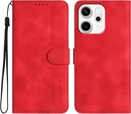 Gedurya OPPO Reno14 5G ケース 手帳型 オッポreno14 5g ケース 帽子 シェイプ オッポ レノ14 5g ケース 手帳型 スタンド機能 SIMフリー 5G対応 マグネット式 OPPO Reno14 5G スマホケース 携帯カバー 財布型 - レッド a