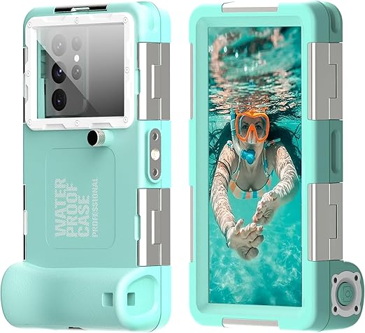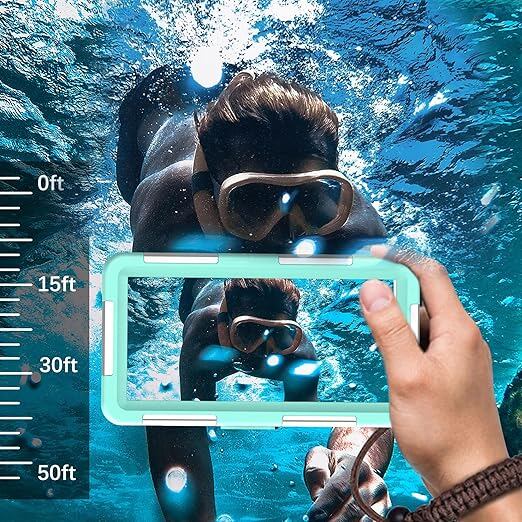 潜水用ケース iphone 水中撮影 ケース 防水ケース スマホ用 水中撮影・写真 IPX8標準防水レベル水深さ15mまで潜水 水泳 防水ポーチ お風呂 海水浴 夏フェス 温泉 お釣り 排気機能 ストラップ付き (薄緑+白) a