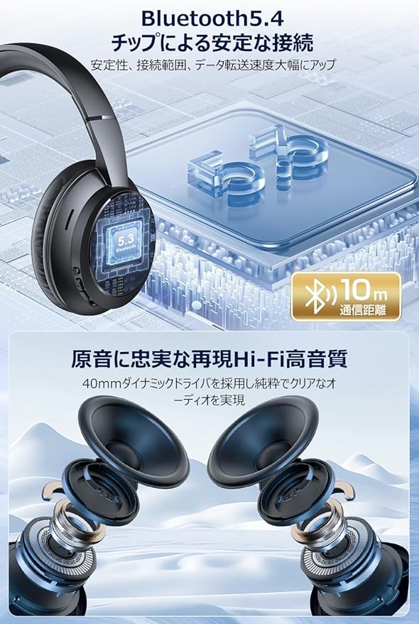 ワイヤレスヘッドホン bluetooth ヘッドホン Sanlao 【業界初 Bluetooth5.4・ヘッドホンbluetooth】 3種EQモード 有線 無線両用 ヘッドフォン マイク付き 最大35時間連続再生 2台同時接続可 EDR HIFI音質 遅延なし 多機種対応 SBC/AAC対応 ハンズフリー通話 密閉型 音漏れ防止 軽量 折り畳み可能 3.5mmケーブル付き ブラック b