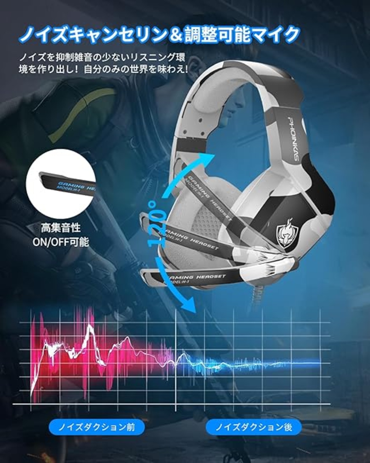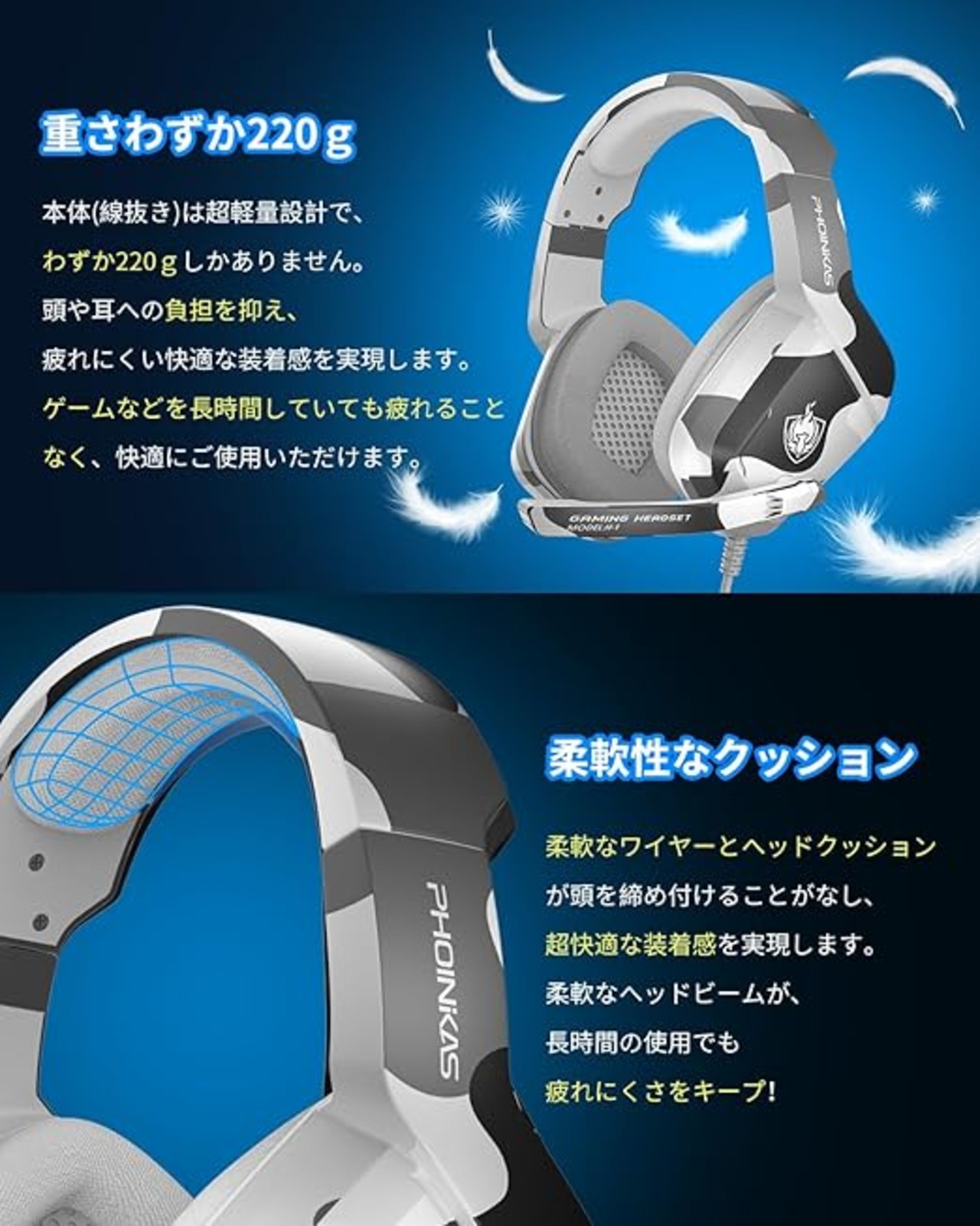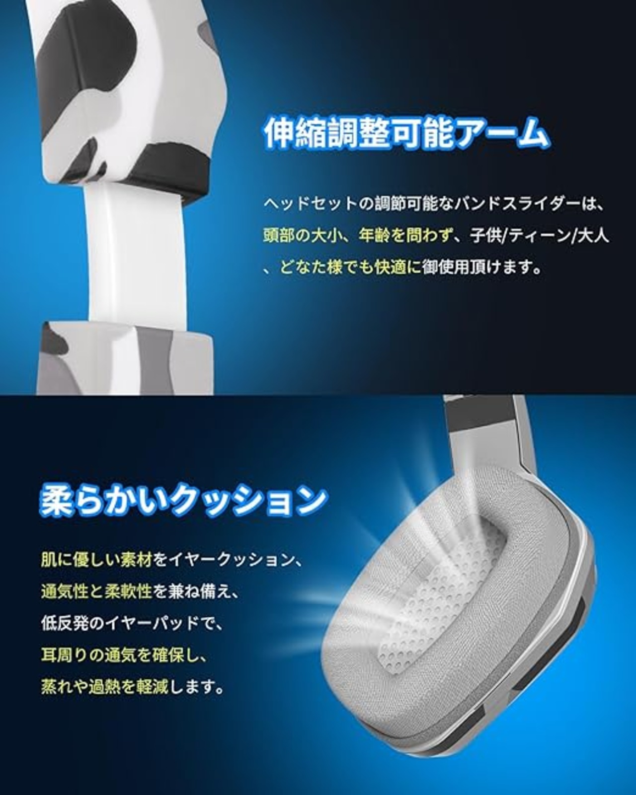 YOTMS ゲーミングヘッドセット 有線 ヘッドホン マイク付き ps4 ヘッドセット ps5 ヘッドセット switch ノイズキャンセリング ゲーム スイッチ対応 Xbox One PC用 軽量 快適 密閉型 重低音 伸縮可能 子供 男女兼用 迷彩 a