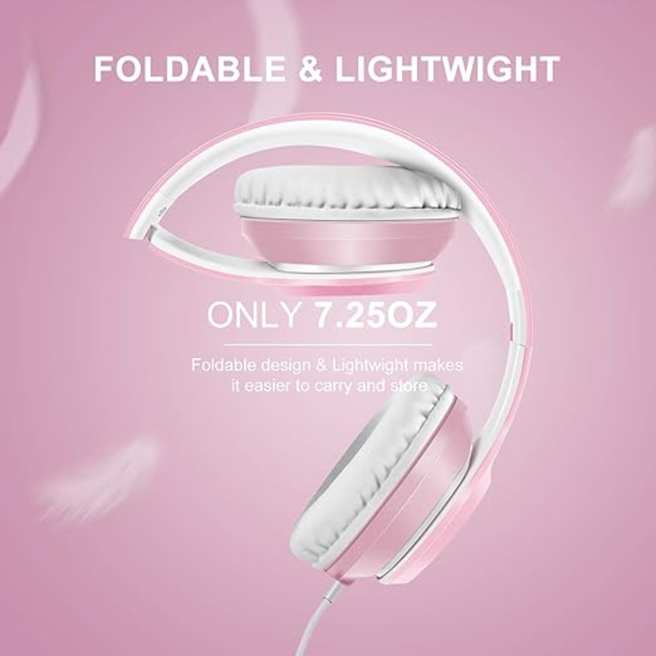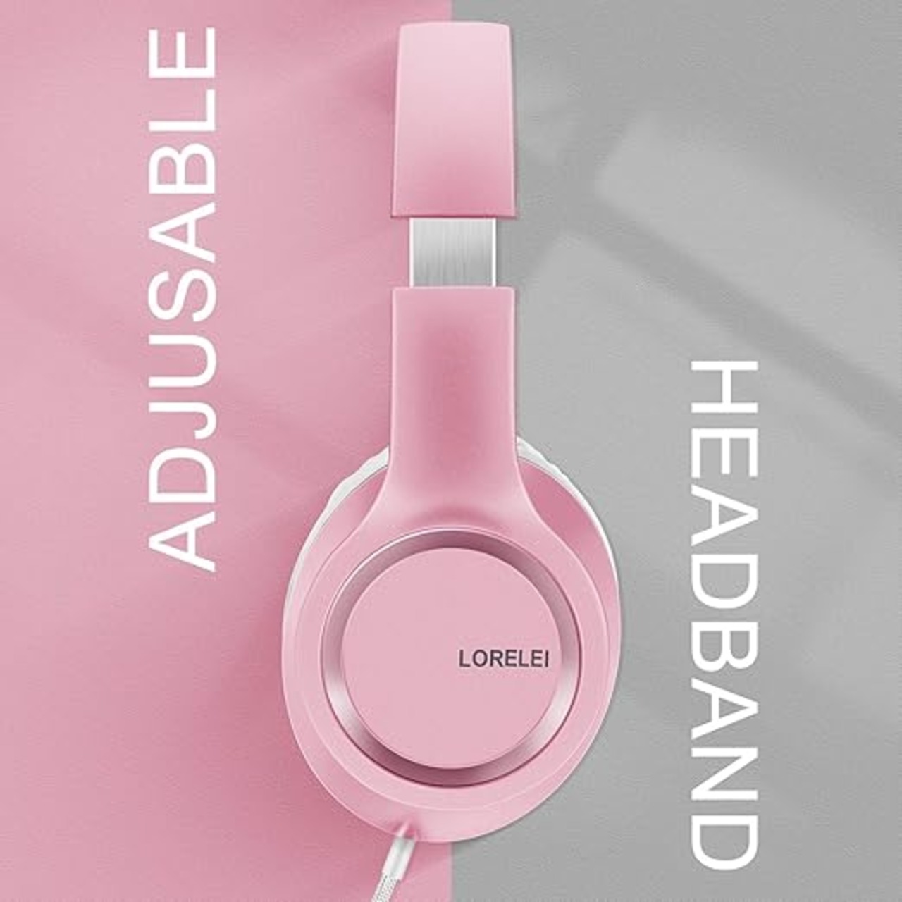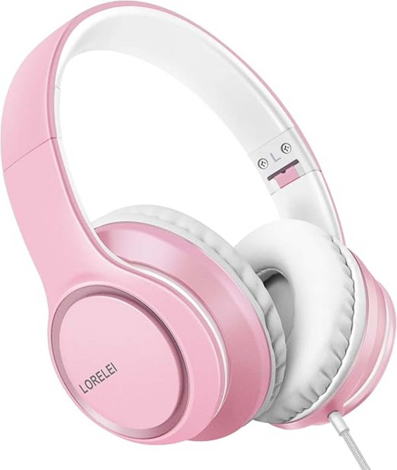 LORELEI X8 マイク付きオーバーイヤー有線ヘッドフォン 1.45m ノイロン製タングルフリーケーブル付き & 3.5mm プラグ、スマートフォン/タブレット/コンピュータ / Mp3/4 用の軽量折りたたみ式ポータブルヘッドフォン(パールピンク) a