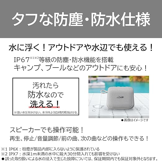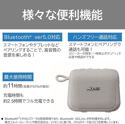 【360°動画あり】AUREX ワイヤレススピーカー TY-WSP50 Bluetooth IP67 防塵 防水 仕様 ハンズフリー通話 対応 コンパクト 最大11時間 使用可能 Type-C 充電 TWS対応 ライトグレー a