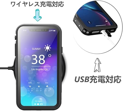 iPhone XR 用 防水ケース DINGXIN IP68防水規格 防水 防雪 防塵 耐震 耐衝撃 アイフォンxrケース ストラップホール付き ワイヤレス充電対応 (黒色) a