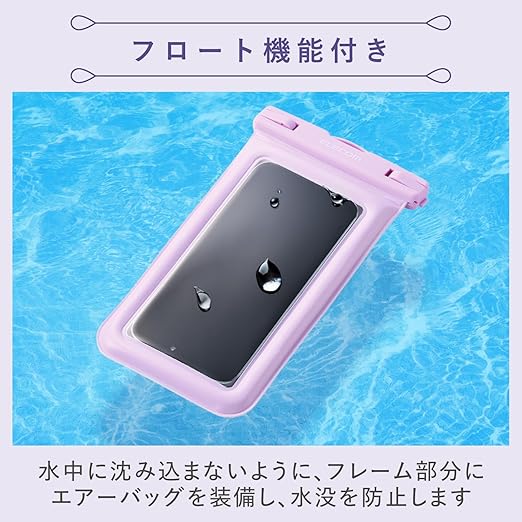 JIS保護等級IPX8相当の防水性能を実現する、水深約10mで30分までの防水テストをクリアしたフロート機能付きスマートフォン用防水ケースです。