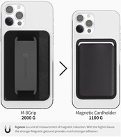 【強い磁石・楽な脱着】 M-BGripはより高い磁力で携帯電話を使用する時もっと安定感を楽しめます。強い磁力でぐっつくためスマホからカードスロットを外す時は横側に押しながら取り外してください。(ケースに貼り付ける時にはMagsafeケースをご利用く