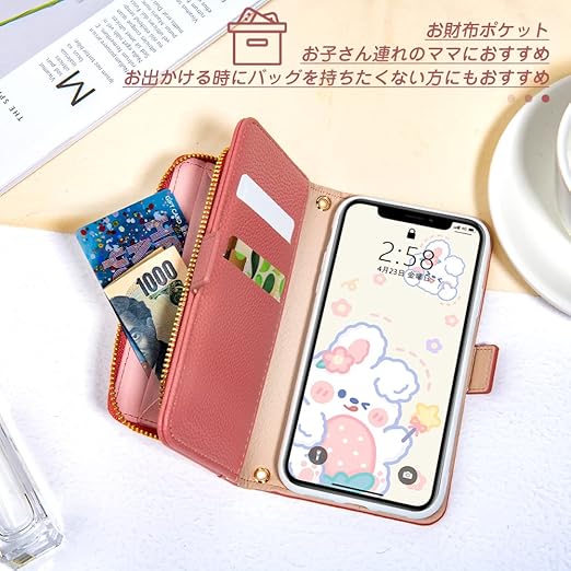 ღ【複数のポケット付きスマホケース】斬新なデザインの手帳型スマホケース。シンプルでおしゃれな流行りポイント、高品質