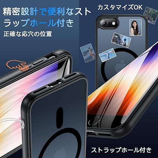 【iPhone4.7インチ専用】:iPhone SE(2022)、iPhone SE(2020)、iPhone 8、iPhone 7(全て4.7インチ)に対応しています。10FTの落下テストをクリアした四隅エアクッション設計で、衝撃吸収率90%以上。TPU+PCの3層構造がスマホを360°全面保護します。便利なストラップホールも備えており、持ち運びが楽になり、より快適にご使用いただけます。