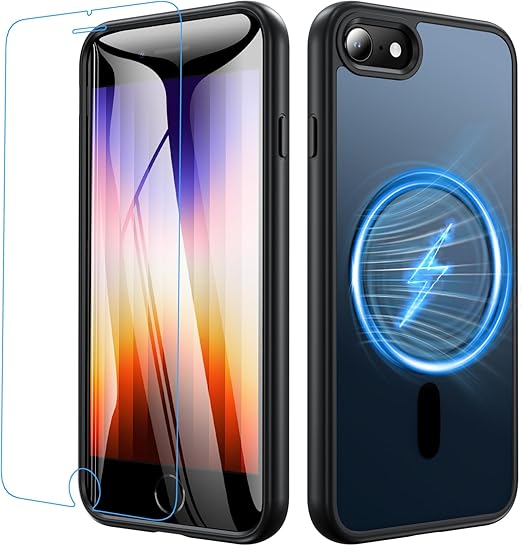 Fin2feel For iPhone SE3/SE2ケース【MagSafe高速充電対応】ガラスフィルム付き 米軍MIL規格 耐衝撃 黄ばみ防止 指紋防止 TPU + PC素材 iPhone 8/7 4.7インチ対応(ブラック) a
