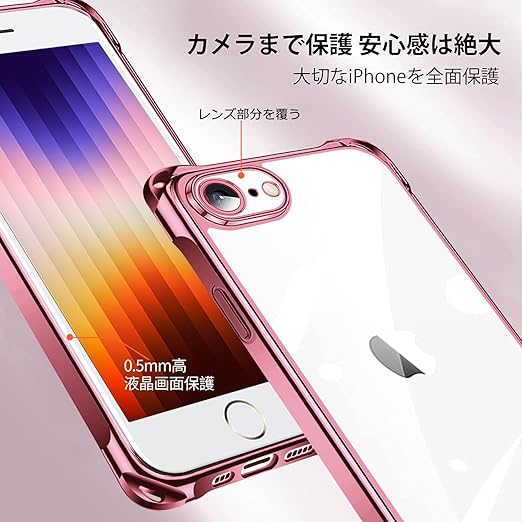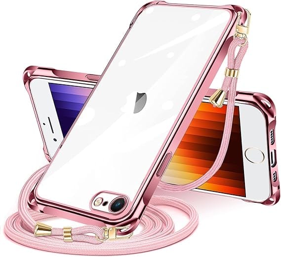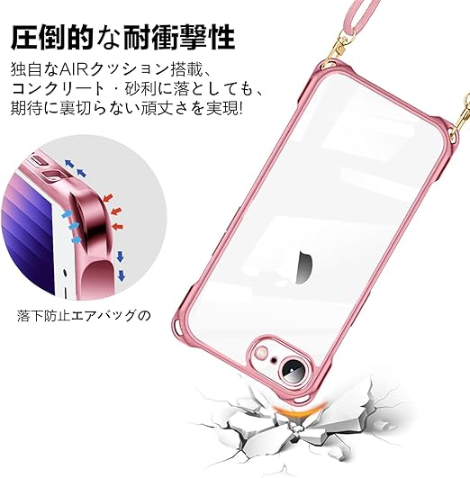 iPhone SE 第3/2世代 7 8 用 ケース クリア ショルダー iphone 7 8 用 スマホケース アイフォン7 8 se2 se3 カバー 肩掛け 斜めかけ 縄掛けケース 透明 TPU 薄型 軽量 耐衝撃 紐付き 斜めがけ 織りストラップ付き ネックストラップ ショルダーケース 縦/横 2WAY 長さ調整可能 取り外し可能 落下防止 紛失防止 ワイヤレス充電対応 (ローズゴールド) a
