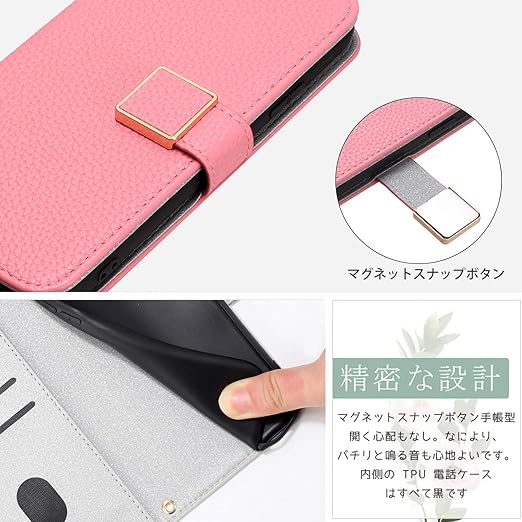 【カード収納とスタンド機能】ケース動画視聴に便利なスタンド機能が付き、横向いて斜めに立てて、お好きな角度を調整でき、両手が解放され、お気軽に読書やビデオの観賞を楽しむことができます。内側には3つのカード入れとフリーポケットがつき、名刺や定期券の収納に優れている 携帯カバーです。