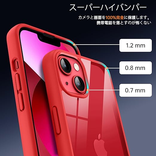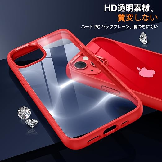 Supdeal iPhone 13用耐衝撃透明ケース 米軍MIL規格 SGS認証 黄ばみ防止 ワイヤレス充電対応 ストラップホール付き 耐久性 クリアで透明なハード背面パネル ソフトシリコンエッジ アイフォン13 スマートフォン保護カバー 6.1インチ(レッド) a