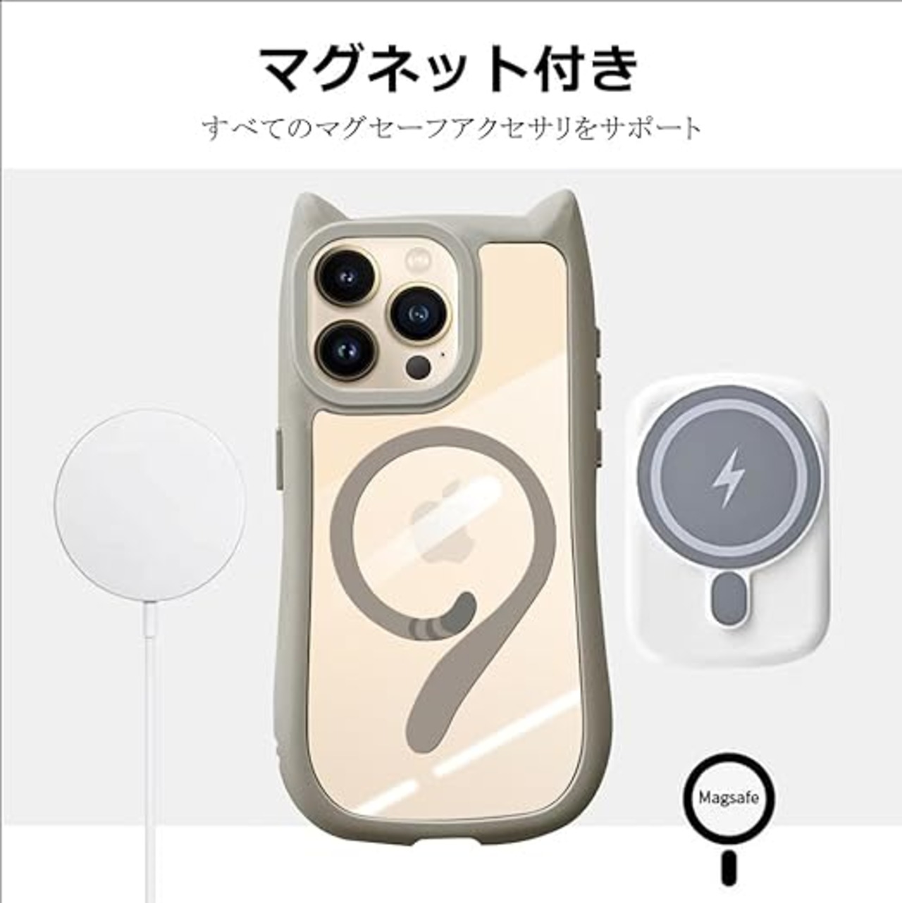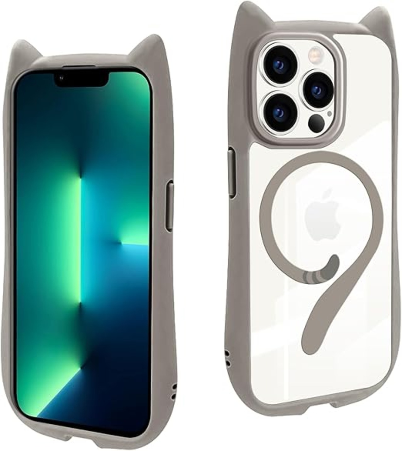 iPhone 13 Pro Max ケース 専用 猫耳 mimi MagSafe対応 TPU ストラップホール付き ねこみみ 猫 ネコ ねこ 背面クリア シンプル おしゃれ アイフォン 13 プロ マックス カバー かわいい 指紋防止 耐衝撃 韓国 スマホケース(クリアグレー) a