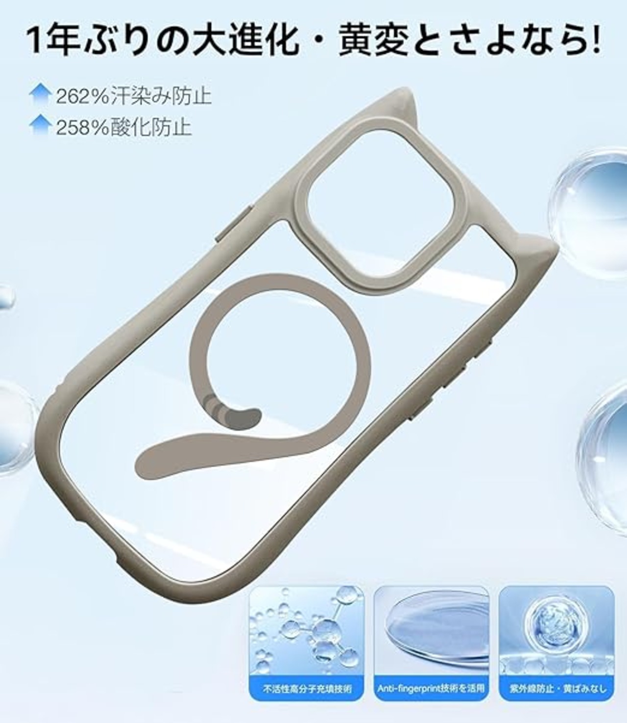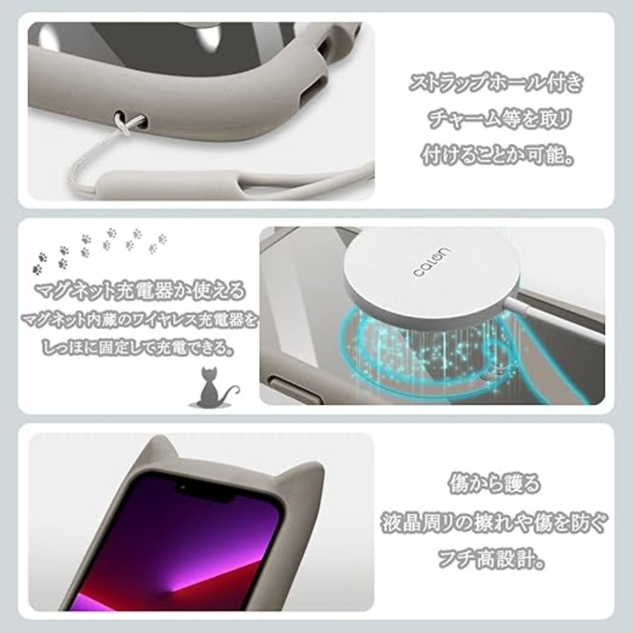 【ワイヤレス充電対応】ケースをつけたまま、Magsafeアクセサリを簡単に装着できるかわいい猫さんしっぽデザイン。本製品はワイヤレスチャージャーを使用しての充電に対応するよう設計されています。(※ 全ての環境で動作保証をするものではありません。)