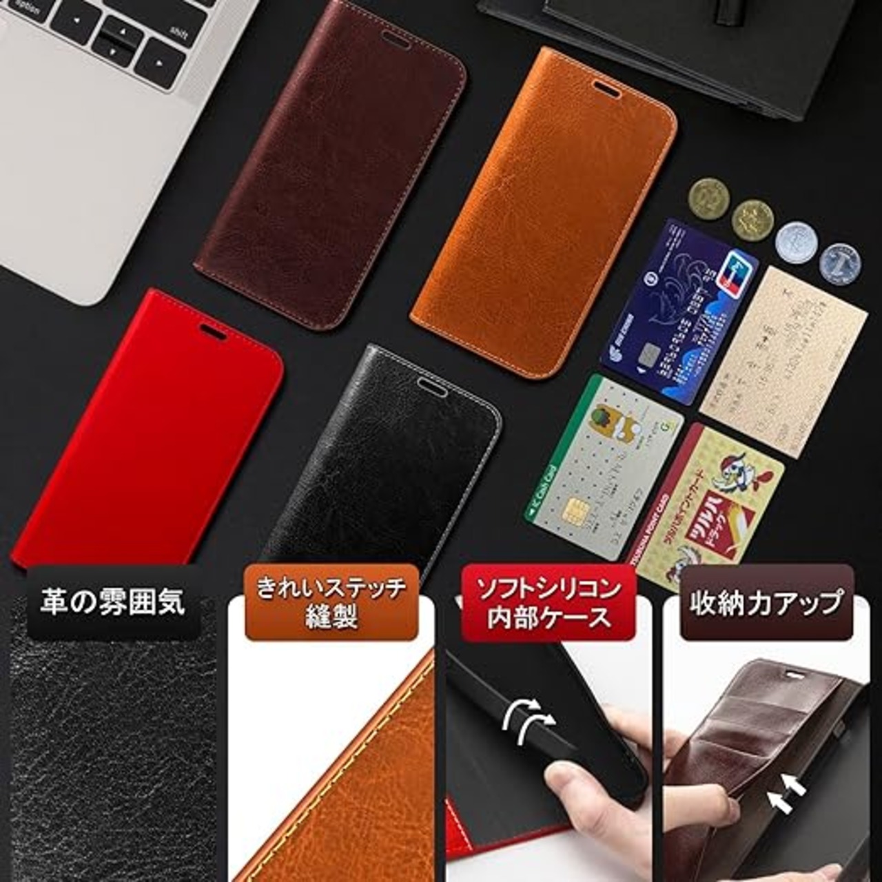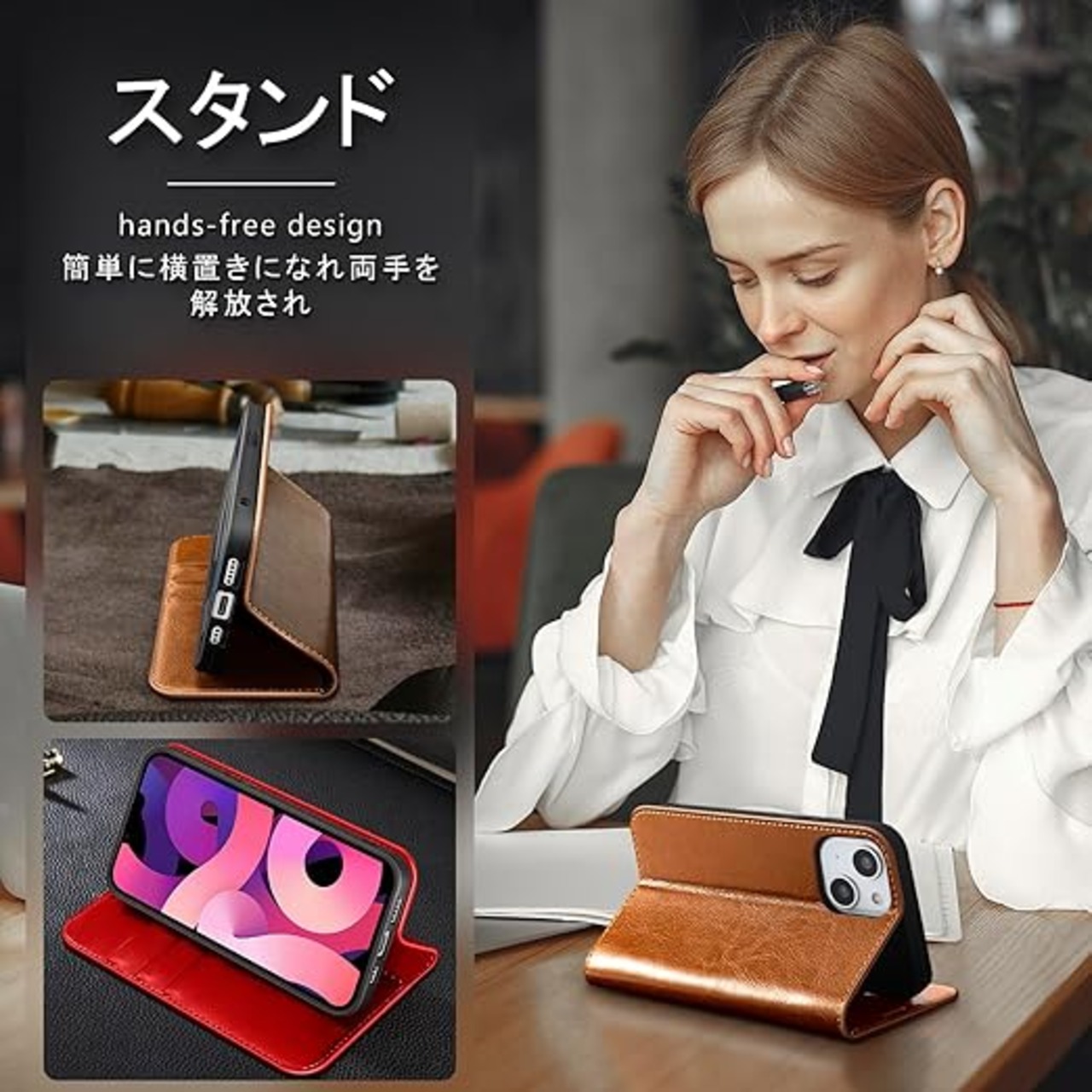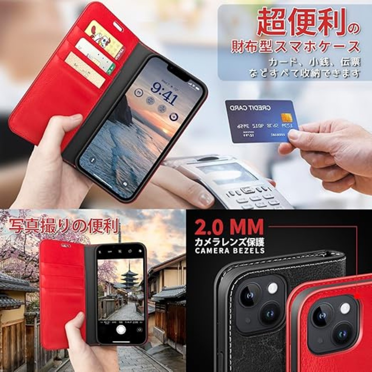 SKIASE iPhone 13 ケース 手帳型 本革 高級レザー マグネット無し アイフォン13 携帯カバー 財布型 横置きスタンド機能 カード入れ カード収納 耐衝撃 全面保護 軽量 薄型 落ち着いた色 レッド a