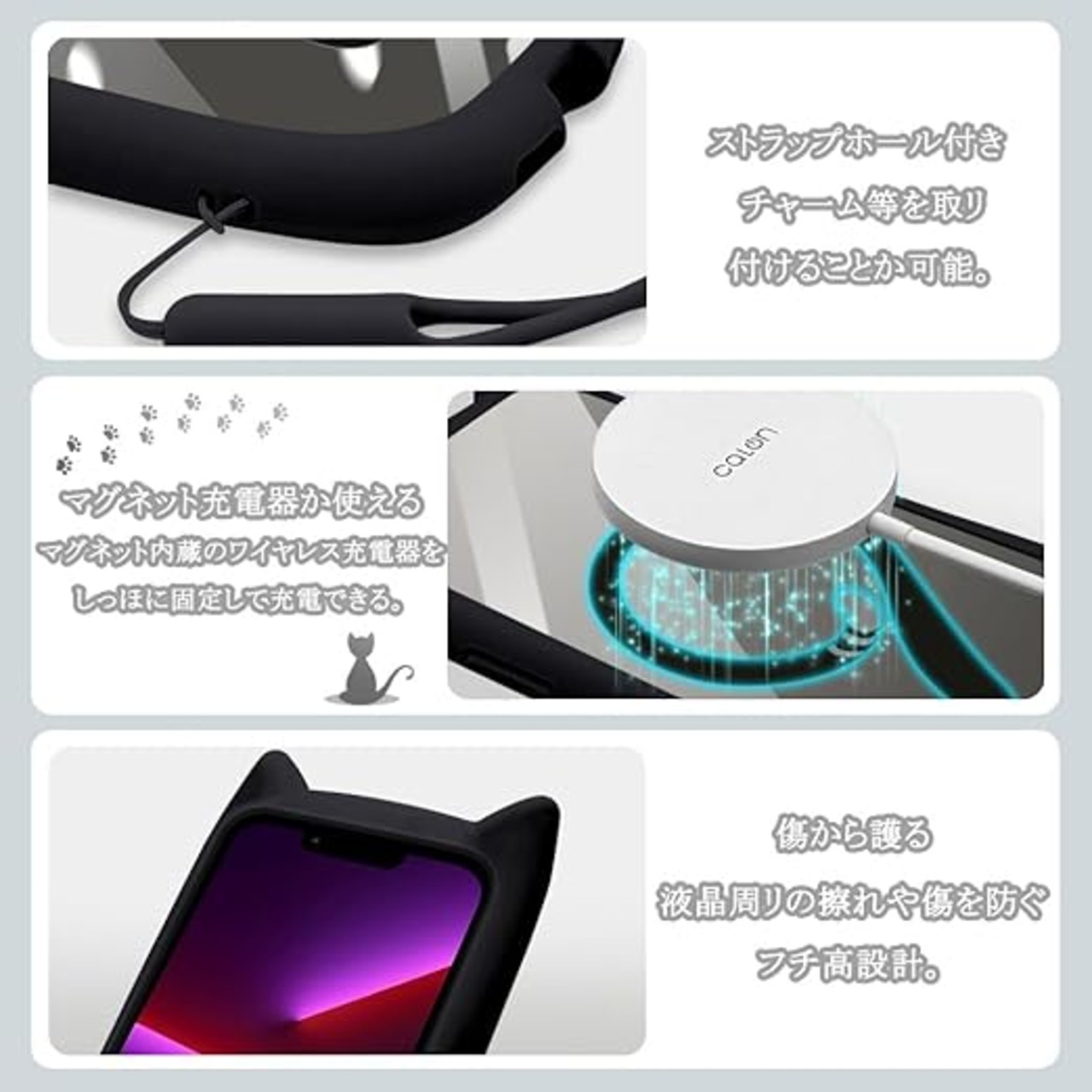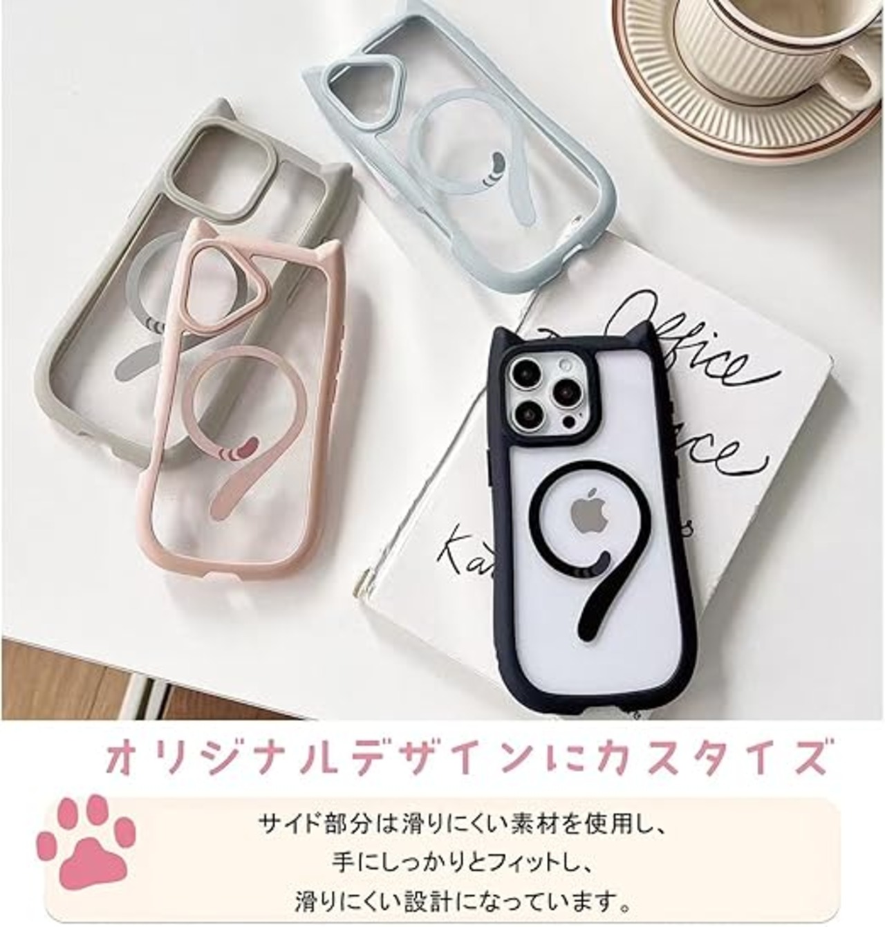【ワイヤレス充電対応】ケースをつけたまま、Magsafeアクセサリを簡単に装着できるかわいい猫さんしっぽデザイン。本製品はワイヤレスチャージャーを使用しての充電に対応するよう設計されています。(※ 全ての環境で動作保証をするものではありません。)
