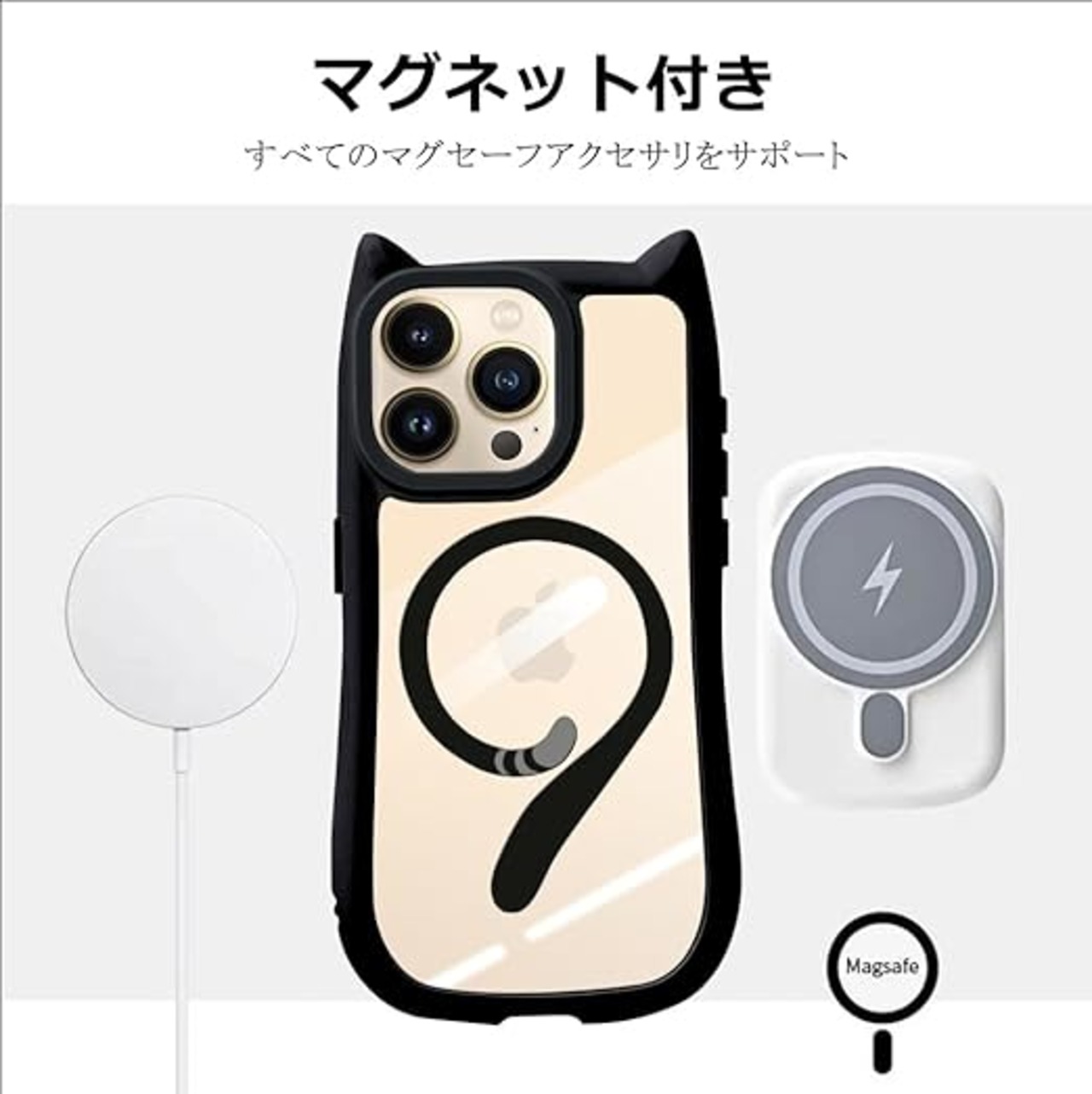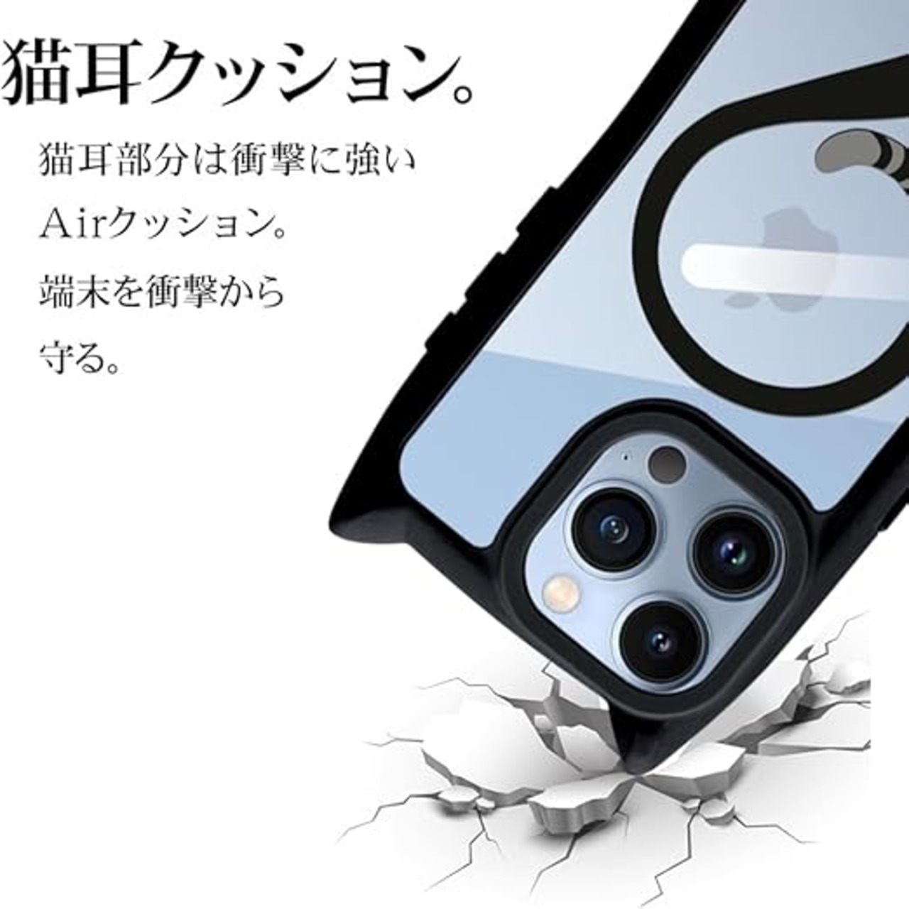 iPhone 13 Pro Max ケース 専用 猫耳 mimi MagSafe対応 TPU ストラップホール付き ねこみみ 猫 ネコ ねこ 背面クリア シンプル おしゃれ アイフォン 13 プロ マックス カバー かわいい 指紋防止 耐衝撃 韓国 スマホケース(クリアブラック) a