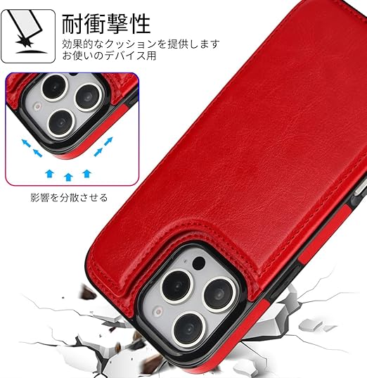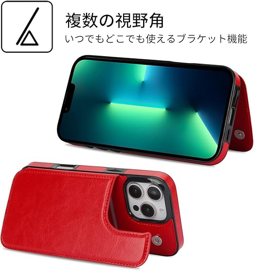 NKECXKJ iPhone13pro 用ケース,iPhone 13 Pro スマホケース いphone13 pro 携帯ケース いphone13pro カバー Case 人気 純正 PUレザー 財布型カードホルター付き収納 スタンド機能耐衝撃 iphone13プロ アイフォン13プロ 13pro i phone13 pro カバーケース レディース メンズ 6.1 インチ(レッド) a
