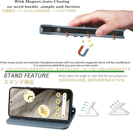 NanHou Google Pixel 8 5G ケース 手帳型 超繊皮カバー 手帳型 耐衝撃 保護カバー 内蔵マグネット 財布型 携帯カバー カードポケット スタンド機能 リストバンド Google 8 - リンネルブルー a