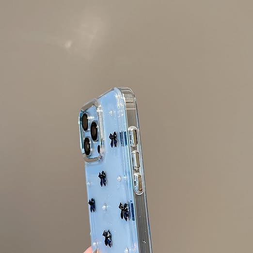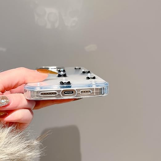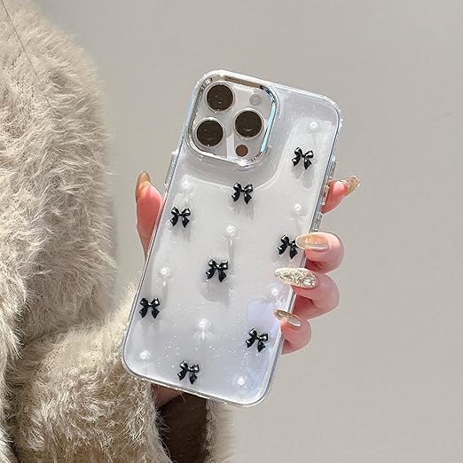 QLTYPRI iPhone13 Pro ケース クリア ブラック ミニリボン おしゃれ 韓国 iPhone13 Proカバー 透明 可愛い 耐衝撃 スマホケース 立体 りぼん装飾 きらきら アイフォン13 Pro ケース、ブラック a