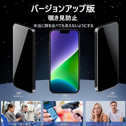 【覗き見防止・プライバシーフィルム】 覗き見防止技術により、左右の視野からの視線を防ぎ、画面のプラ