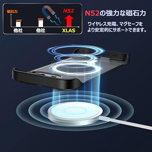 [XLAS] iPhone 14 Pro ケース フレームレス マグセーフ ケース frameless iPhone 14 Pro magsafe case 新型 薄型 軽量 黄ばみなし レンズ保護 スリム グリップ感 持ちやすい ワイヤレス充電 MagSafe 対応 6.1インチ アイフォン 14 pro カバー ストラップホール Mag-X ブラック black (iphone 14 Pro magsafe仕様) a
