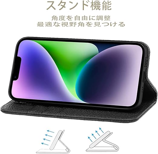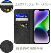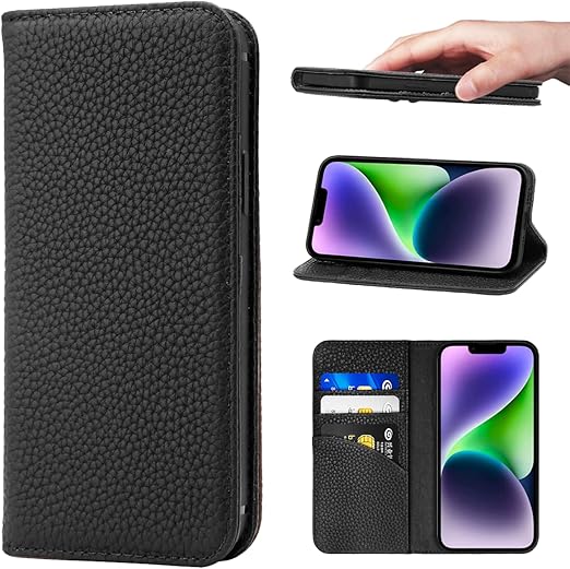 NanHou iPhone 14/13 ケース 本革 手帳型 カバー 耐衝撃 保護 カバー 本革 内蔵マグネッ RFIDト 財布型 携帯カバー カードポケット スタンド機能 - ブラック a