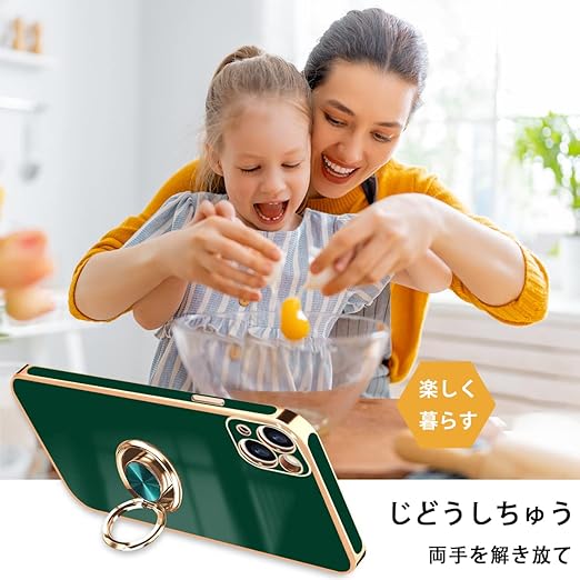 JOUMIN YAO iPhone 14 ケース リング付き イフォン14 リング TPU カバー 全面保護 耐衝撃 スマホケース iPhone 14 360°回転 スタンド機能 携帯カバー 車載ホルダー対応 ストラップホール付き メッキ加工 擦り傷防止 6.1インチ(ダークグリーン) a