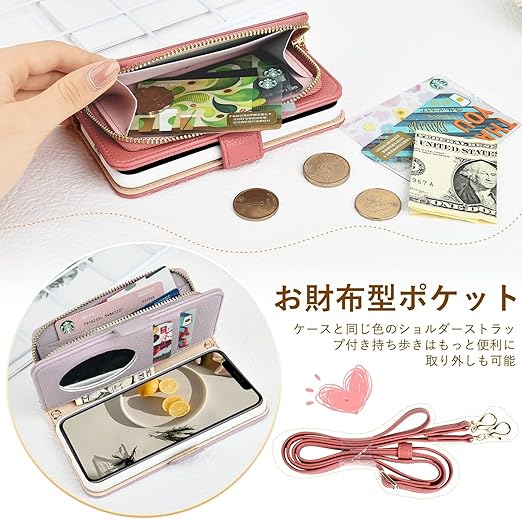 多機能なお財布・ショルダーストラップ付きスマホケース 長さを調節可能なショルダーストラップ付き、肩掛け、斜め掛けができます。スマホをうっかり紛失してしまうリスクを減らせます。お財布付きのポーチ型デザインは、日常生活や日帰り旅行、アウトドアなどに最適です。オリジナルデザイン