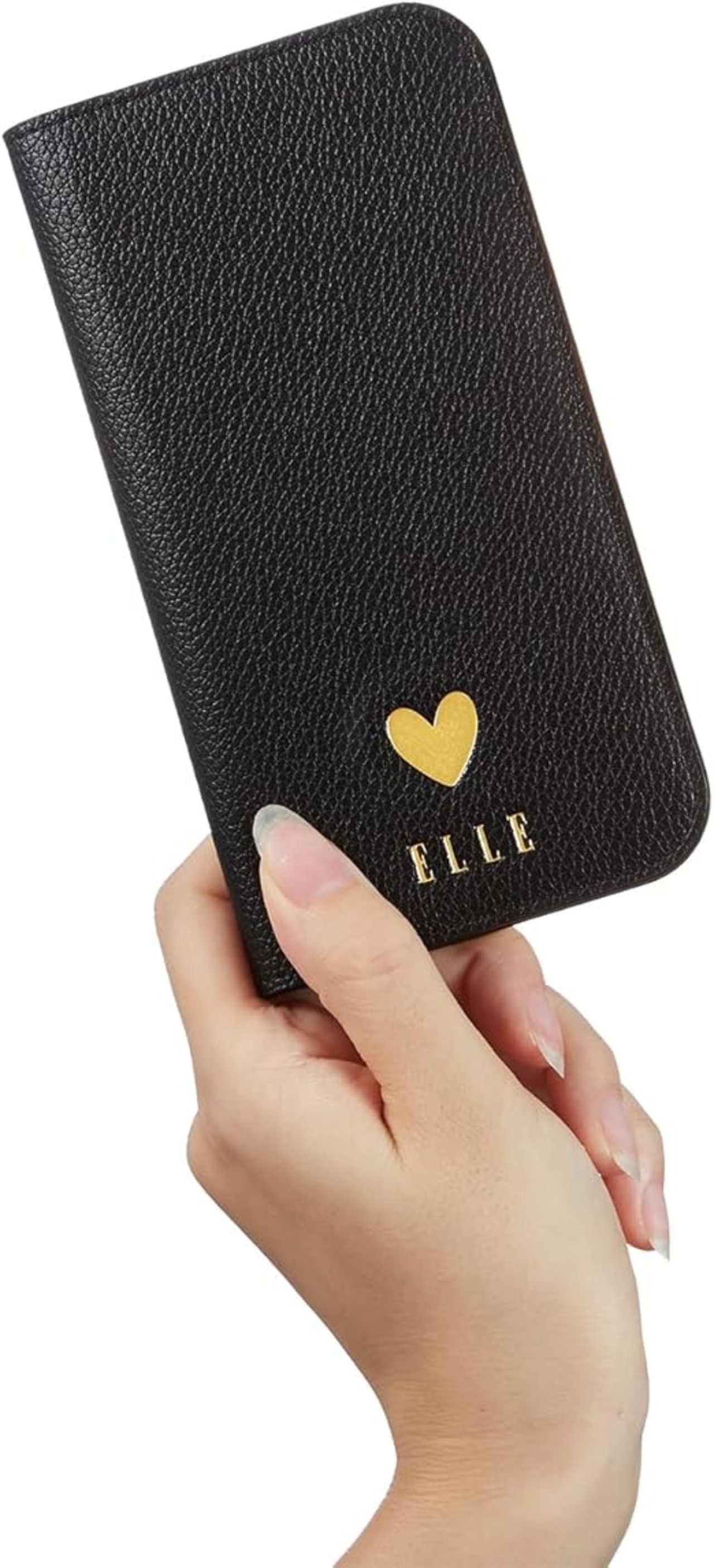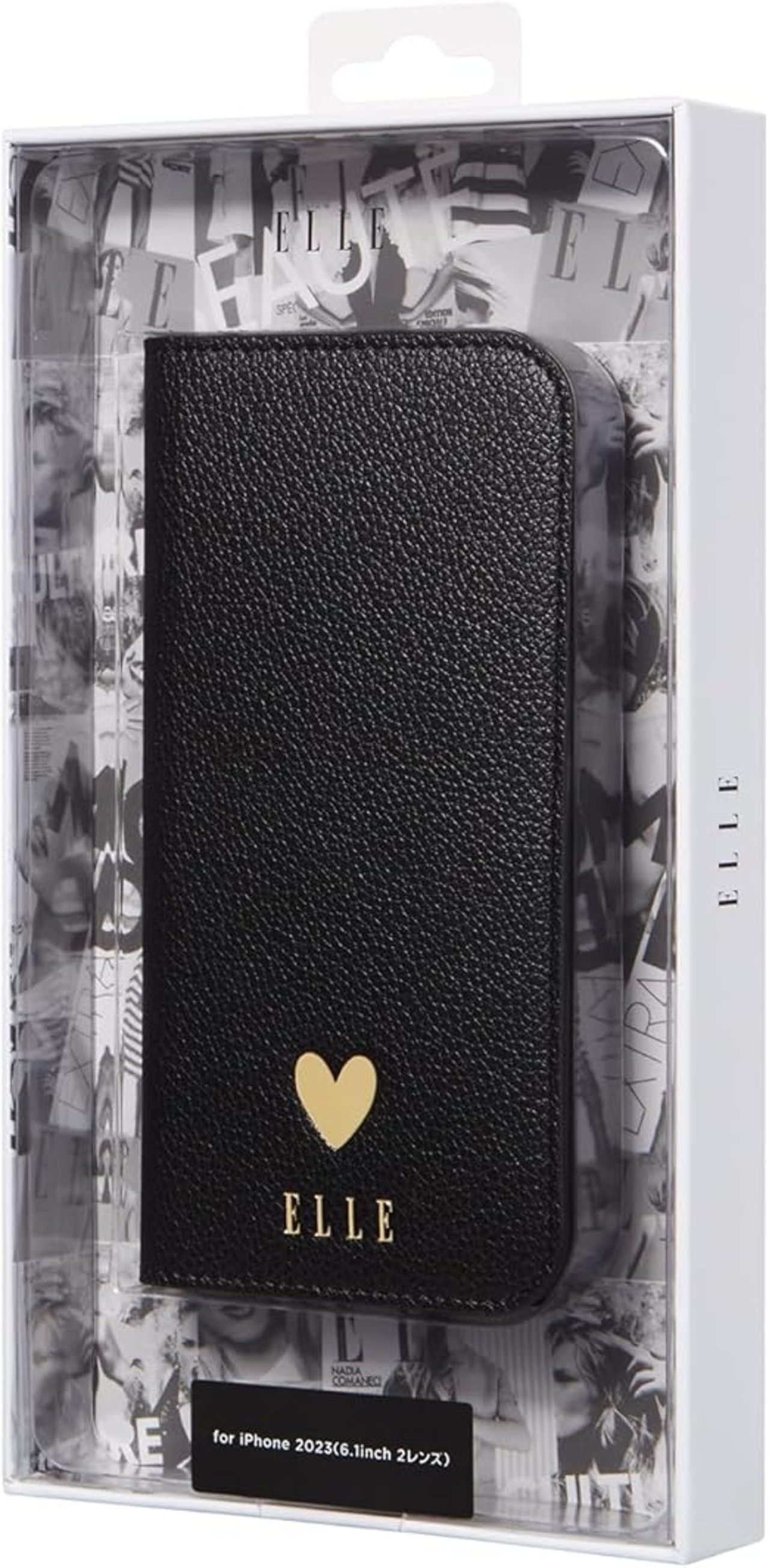 [ELLE] iPhone 15 ケース 手帳型 Folio Case 正規品 エル (Black) a