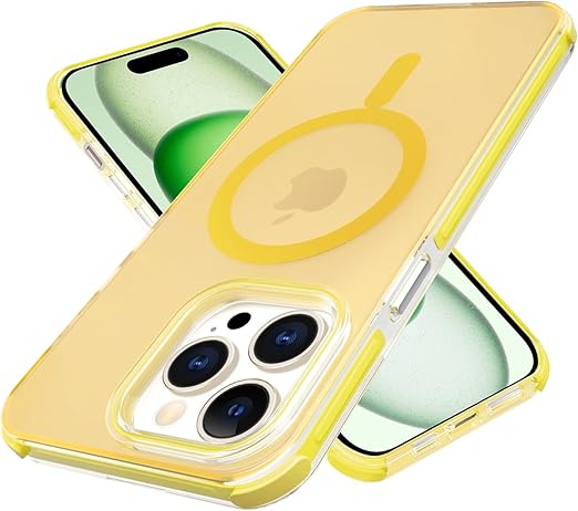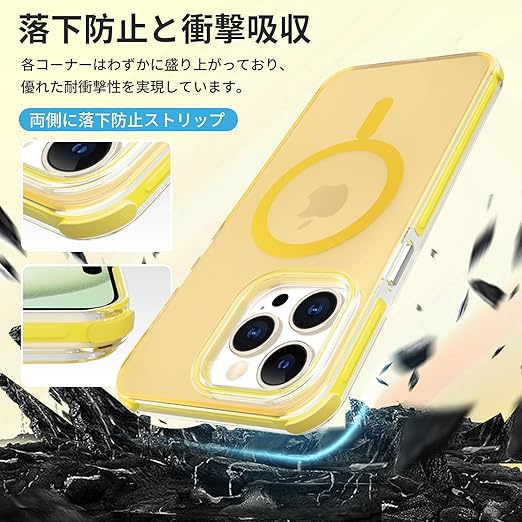MIIFUBOO iPhone 15 Pro MagSafe対応 ケース 耐衝撃 TPU 半透明 【カラフルキャンディシリーズ】 アイフォン 15 Pro スマホケース 米軍MIL規格 衝撃吸収 滑り止 指紋防止 擦り傷防止 ワイヤレス充電対応 いphone15Pro カバー マット質感 落下保護 耐黄変 軽量 ファッション,グレープフルーツ(オレンジ、イエロー) a