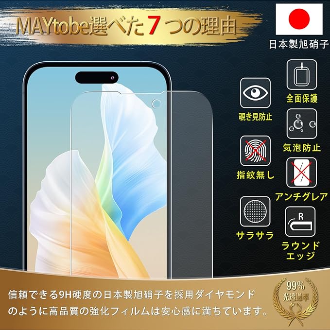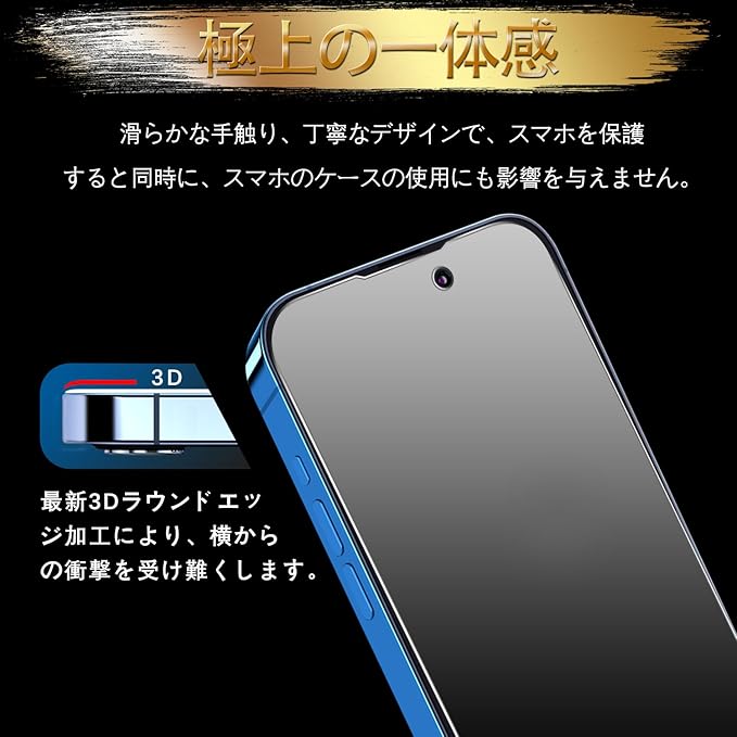 【★日本旭硝子素材★品質保証】国産ガラス採用、日本旭硝子社製ガラス素材を使用します。通常のPETフィルムより4倍の強度、鍵やナイフなどの鋭利なものがスマホのスクリーンに与える損害を効果的に防止し、スマホのスクリーンをよりよく保護することができます。当社の製品保護フィルムは出荷前に人工的な検査を行い、最後にお客様の手に届くように高品質の強化ガラスフィルムを届けることができます。※対応iPhone 15 Pro max。