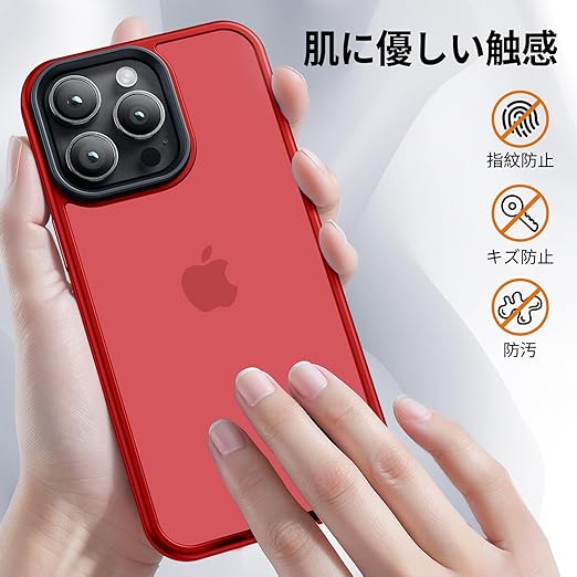 COSOIK iPhone 15 Pro Max 用 ケース 半透明 衝撃吸収 米軍MIL規格取得 マット感 黄ばみなし レンズ全面保護 耐衝撃ストラップホール付き 6.7インチ アイフォン 15 Pro Max用カバーラネ あか a