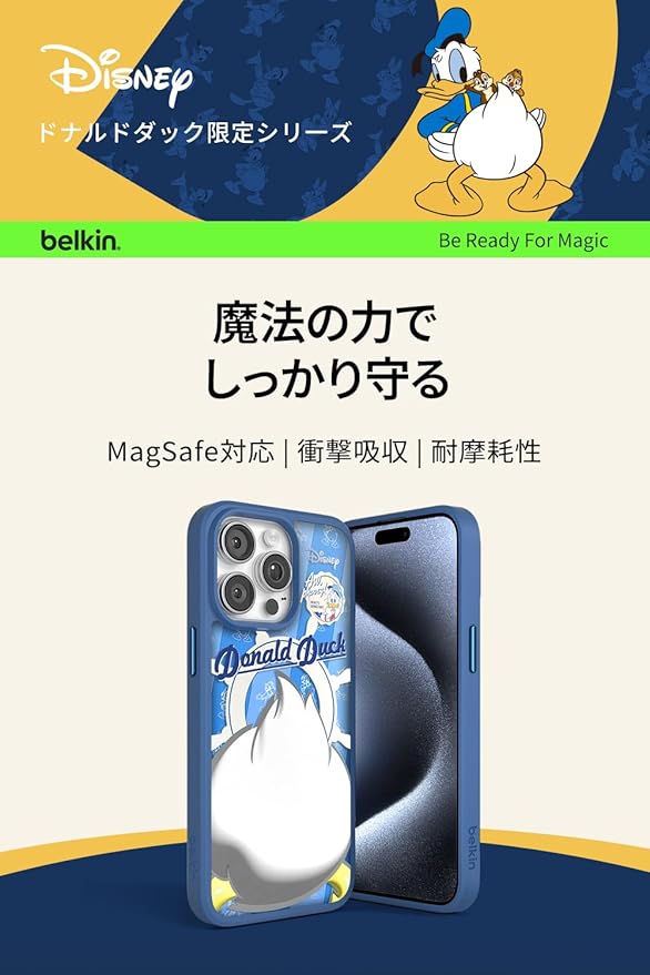 【ドナルドダック】Belkin iPhone 15 Pro Max用ケース MagSafe対応 マグネット搭載 薄型 超耐衝撃 UV耐性 黄ばみ防止 ソフトTPU グリーン MSA018qcNB-DY a