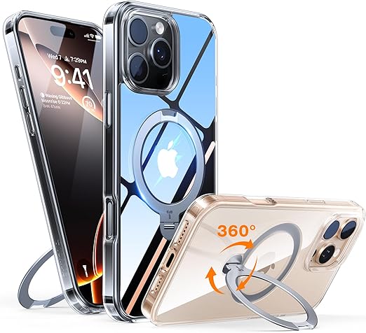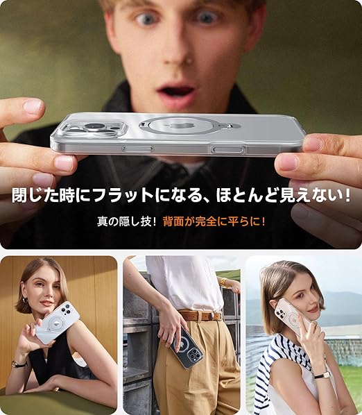 【カチッ!2024新開発・安定性】TORRAS iPhone 16 Pro Max 用 ケース ゼンマイ式スタンド 縦横両対応 リング マグネット搭載 MagSafe対応 ワイヤレス充電対応 米軍MIL規格耐衝撃 指紋防止 黄変防止 マグセーフ対応 6.9インチ いphone16pro max 用 ケース「Ostand Spin」クリア a