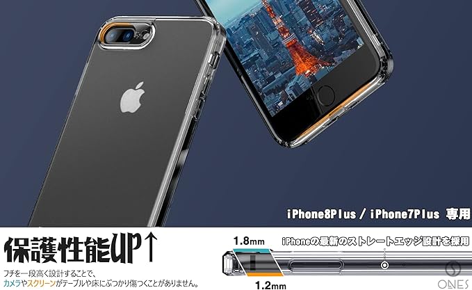 【 ONES の エアクッション技術 & 360°保護システム 】 ONESは、柔軟なバイエルTPUバンパーと耐久性のマット感·高靭強化なPC背面パネルを組み合わせました。ONESのケースのバンパーとコーナー部分は、ONESのエアクッションテクノロジーにより日常生活における衝撃を確実に吸収します。ONESは、衝撃を吸収する柔軟なエッジ (カメラレンズと iPhone8Plus / iPhone7Plus のボディのわずかに上) 。と強固なPC背面を組み合わせることで保護機能を強化しているのです。
