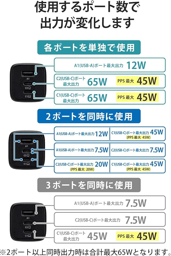 ※2ポート以上同時出力時は合計最大65W