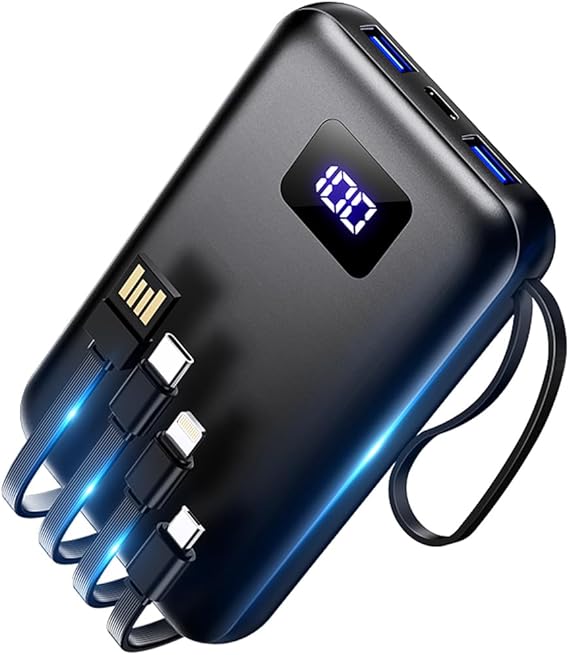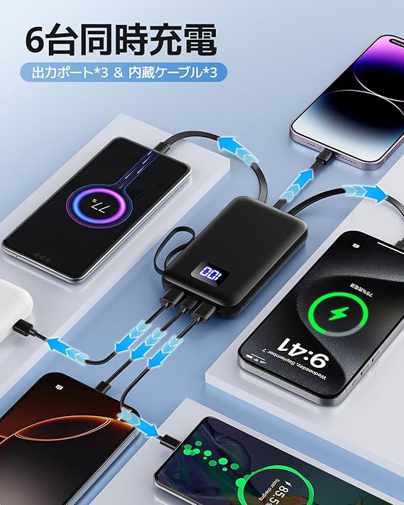 モバイルバッテリー 【2025新定番・軽量×大容量45800mAh】 モバイルバッテリー 大容量 軽量 小型 最大2.4A出力 ケーブル内蔵 6台同時充電可能 LCD残量表示 タイプc 低電流対応 携帯充電器 iPhone iPad//Android各種スマホ対応 持ち運び便利 PSE認証済み/安全回路保護 旅行/防災対策 a