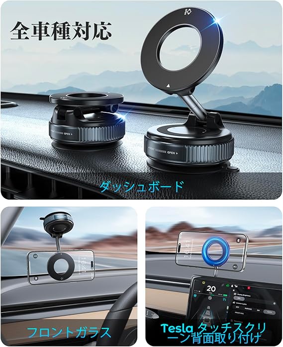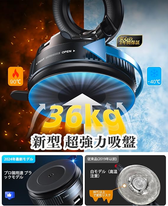 【真空+磁気のW吸着で走行中も安定】独自の真空ロック技術 により、従来品より 50%以上吸引力アップ。凹凸道や急ブレーキでもスマホが落下しません。耐温度-40℃~165℃、繰り